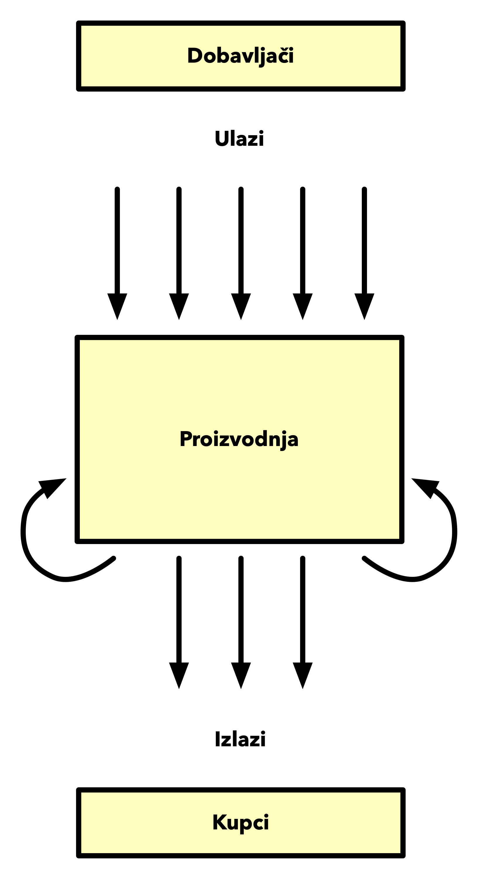 Proizvodnju možemo gledati kao “mašinu” koja ulaze pretvara u izlaze: